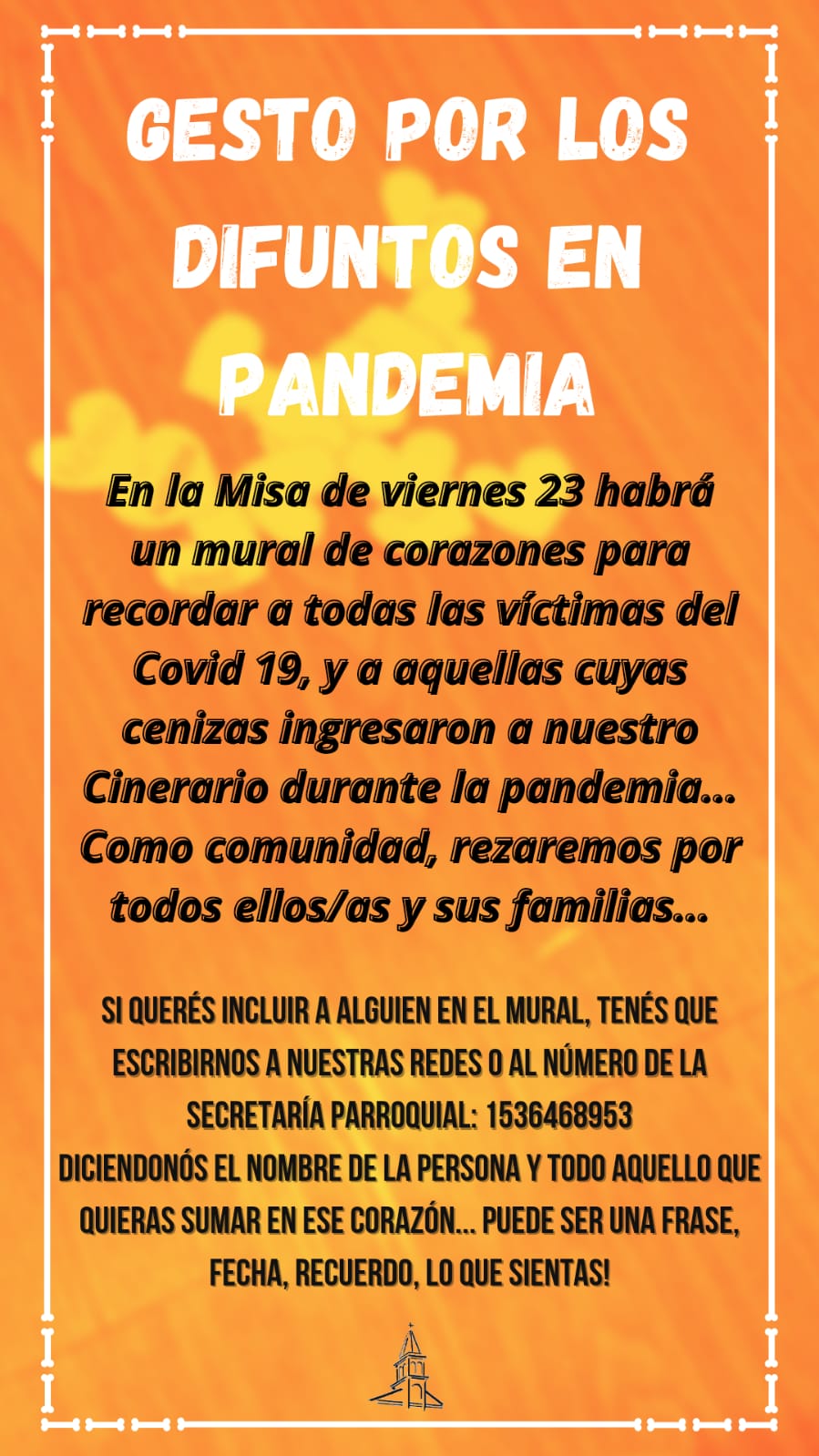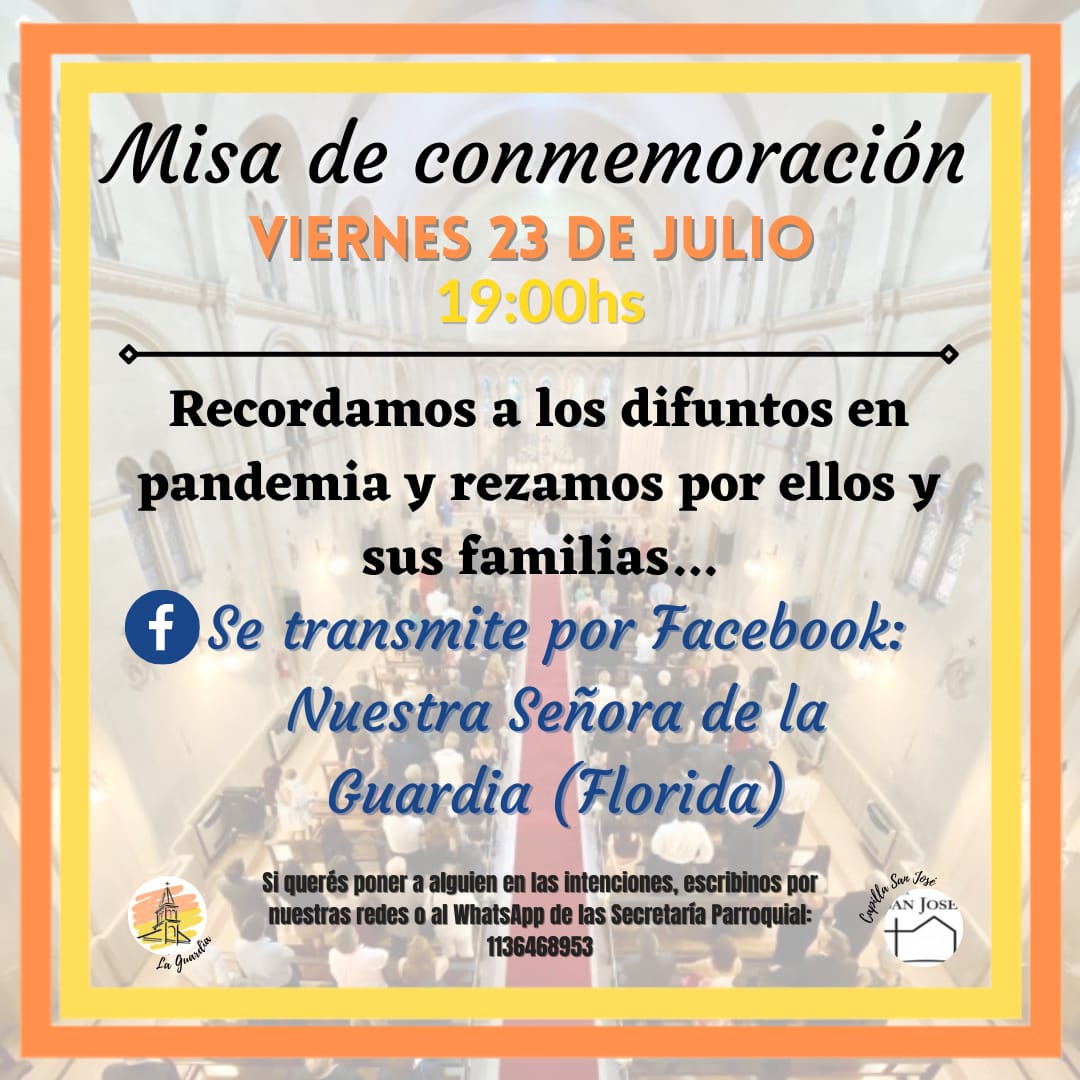 Viernes 23 de julio, 19:00 hs. Recordamos a los difuntos en pandemia y rezamos por ellos y sus familias.